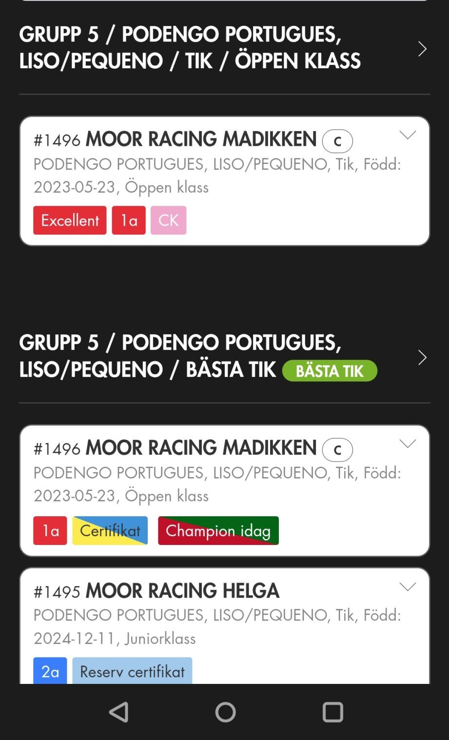 Fina resultat för MoorRacing Hildur och lillasyster MoorRacing Madikken